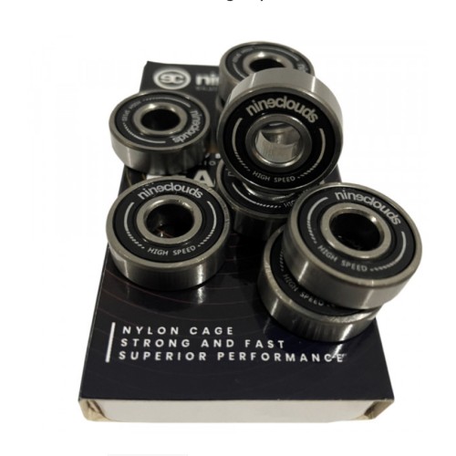 Kit com 8 rolamentos Ninecloud de alta qualidade com acabamento exclusivo , Lubrificado e vedado. Indicado para todas as modalidades. Empresa totalmente ligada ao skate brasileiro. Prova desta forte sintonia é sua linha de produtos e sua respeitada equipe de atletas